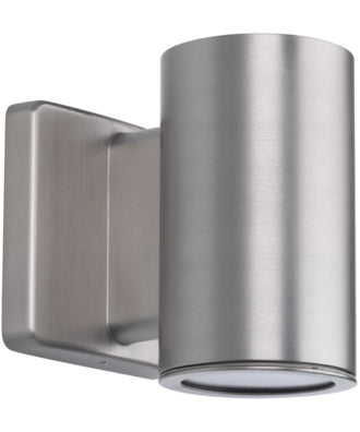 Sleek, 3" LED cylindrical wall lantern with downlight in elegant Satin Nickel finish. Die-cast aluminum wall brackets and heavy-duty aluminum framing. Fade and chip-resistant. UL listed for wet locations. Can be used indoor or outdoor.