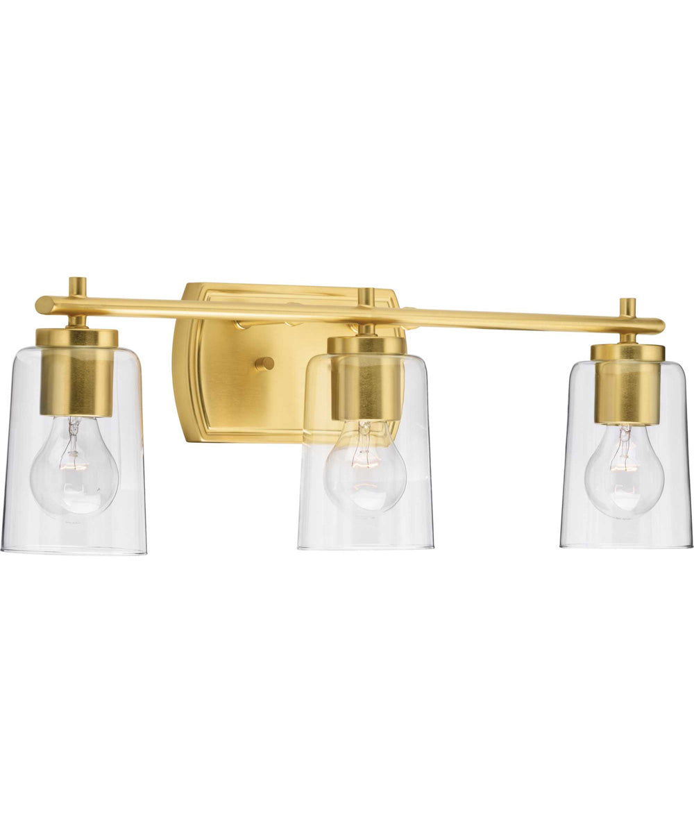 Progress lighting Adley 3-Light Clear Glass New Traditional Bath Vanity Light Satin Brass
