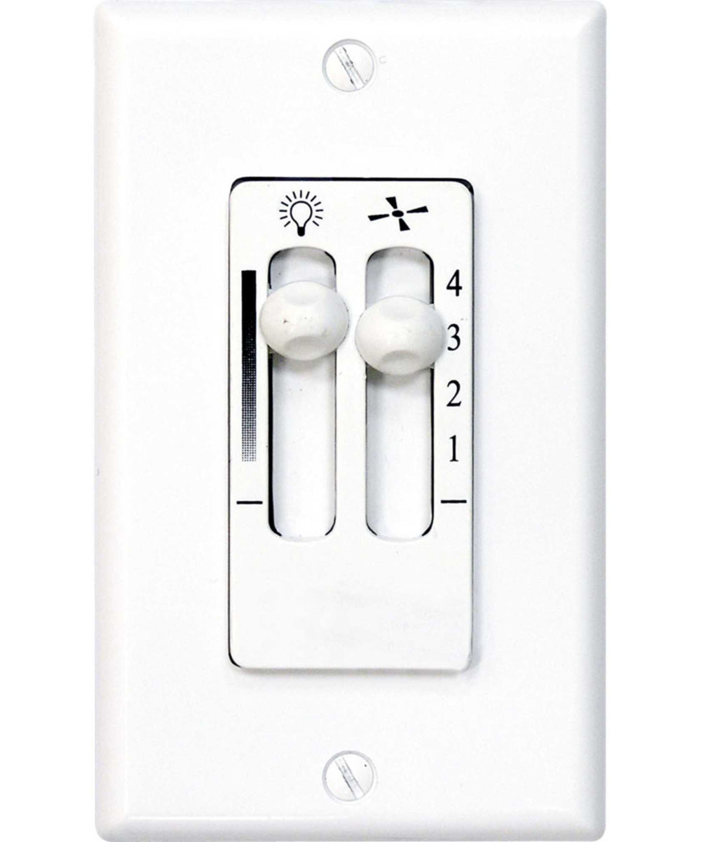 Four-speed, ceiling fan white wall control provides convenient operation for fans with pull-chain controls. Includes full-range lighting dimmer and switch plate cover. Requires two circuits - fits single gang wall box.