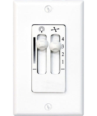 Wall control transmitter provides convenient operation. Simple white finish. Includes full-range lighting dimmer. Four-speed: 1=fastest speed, 4=slowest speed.