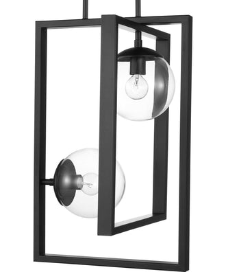 The Atwell 2-Light Clear Glass Luxe Pendant Light in Matte Black is an extraordinary piece that makes a lasting first impression. This pendant light boasts a unique blend of circular and architectural designs, creating a striking yet harmonious aesthetic. The clear, globe-shaped glass shades contrast beautifully with the sharp corners of the matte black frame, adding a touch of sophistication to any space. The intricate design and high-quality craftsmanship make this light fixture a standout addition to your home decor.