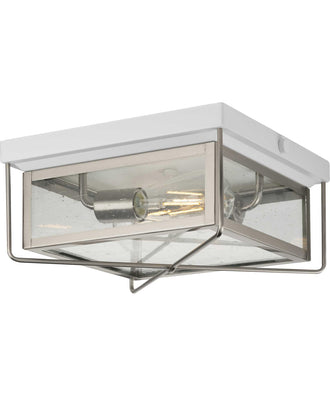 Application: Transform your home into a warm and cozy retreat with the Barlowe Collection 2-Light Stainless Steel Clear Seeded Glass Farmhouse Outdoor Flush Mount Ceiling Light ideal for any hallway, stairwell, entryway, kitchen, or sitting room. Styles: Perfect for farmhouse, coastal, and transitional style settings. Finish: A rustic cross-brace design decorates the charming square silhouette coated in a crisp stainless steel finish. Materials: Constructed from steel to ensure a long product lifespan. Glass/Shades: Light sources glow through clear seeded glass panes add an extra pop of rustic personality. Bulbs: For ideal illumination, use 2 medium base bulbs that are sold separately (60w max - LED/CFL/incandescent). Compatible with dimmable bulbs. Dimensions: Measures 11-inch length by 11-1/2-inch width by 5-1/2-inch height. Certifications: cCSAus damp location listed. Pairs With: Pairs with a variety of Progress Lighting fixtures. Warranty: Our 1-Year Limited Warranty guarantees your complete satisfaction with your purchase and includes professional after-sales customer service support.