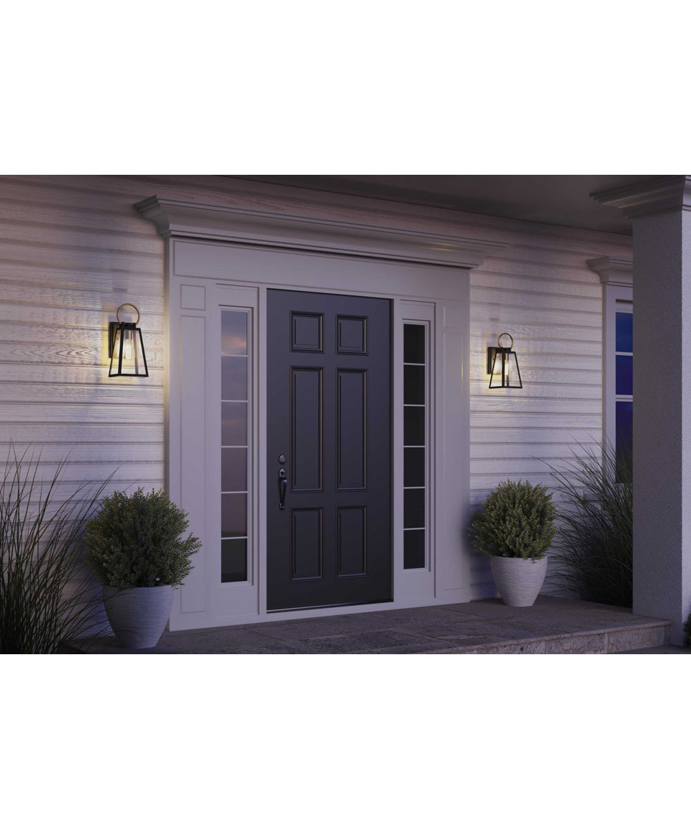 Barnett lanterns deliver timeless appeal with a decidedly modern flair. Large clear panes of glass frame your choice of traditional or vintage style bulbs. A graphic-inspired overscaled loop features a contrasting brass-tone finish. One-Light Small Wall Lantern.