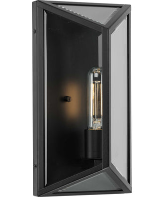 Unique angular lines perfectly frame the soft light source from within, ideal for Modern Farmhouse and Transitional exteriors. Provides soft illumination to outdoor patios and porches. A matte black finish provides a strong, modern look. The fixture's angular design provides a lovely, soft glowing illumination. Use clear bulbs (sold separately) to enhance the modern style of this light. Measures 7.5-in. width by 13.75-in. height, extends from wall 4.62-in. Uses (1) 60-watt medium base bulb or LED equivalent, that is sold separately, and dimmable when used in conjunction with a dimmable bulb. Certifications: cETLus Wet location listed, fixture can be used in rooms where water may be present. Warranty: Our 1-Year Limited Warranty guarantees your complete satisfaction with your purchase and includes professional after-sales customer service support. Includes installation instructions and mounting hardware for a quick, easy installation