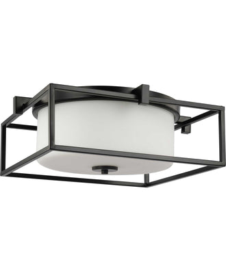 Stick with simple geometric forms and clean crisp lines with this modern flush mount. A beautiful opal glass shade visually calms the sharp edges of the boxy frame in a masterful stroke of design excellence. The frame is coated in a classic black finish that contrasts the light shade. The light fixture is just right for spaces in need of a subtle, feminine touch.