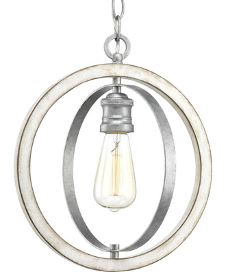 This pendant light boasts a playful yet functional design with its armillary-style frame. The circular design is both modern and timeless, making it a versatile piece that fits seamlessly into various decor styles. The galvanized finish, complemented by antique white accents, adds a touch of rustic elegance, perfect for farmhouse, rustic, or urban industrial themes. Its steel construction ensures durability, while the lack of a glass shade keeps the design open and airy, allowing the bulb to be the focal point.