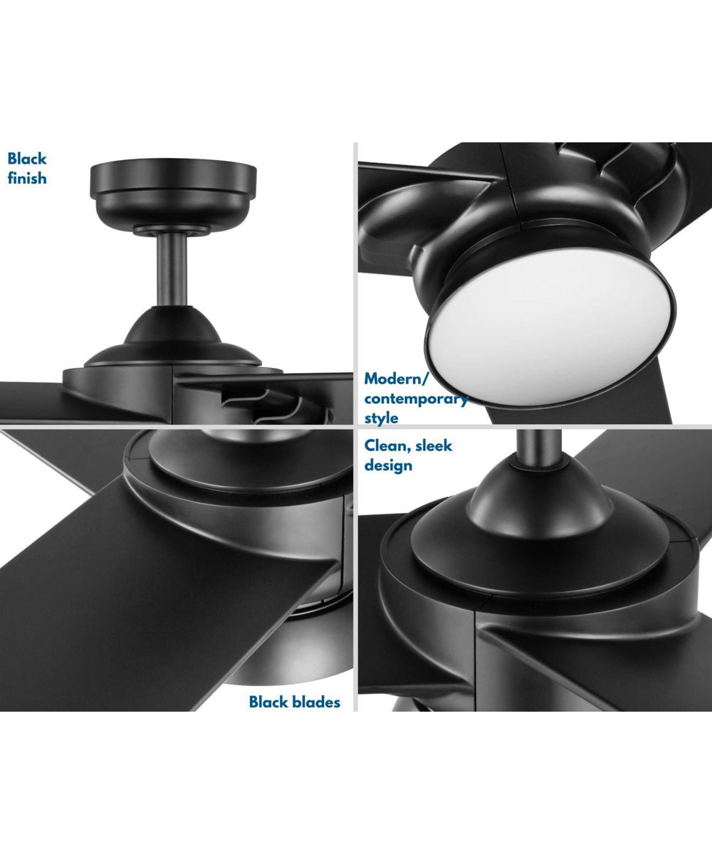 Achieve a sleek, modern look with the Edwidge Collection 3-Blade Black 52-Inch DC Motor LED Contemporary Ceiling Fan. The non-metallic, rust-proof housing canopy is coated in a classic black finish complemented by matte black blades. Blades are crafted from a strong, all-weathered ABS material to prevent warping.
