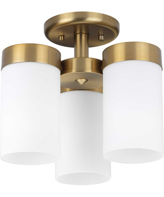 Achieve a mid-century modern look with Elevate, which boast an etched white glass shade and a frame inspired by Space Age styling in a Brushed Bronze finish. This three-light semi-flush is part of our Design Series collections.