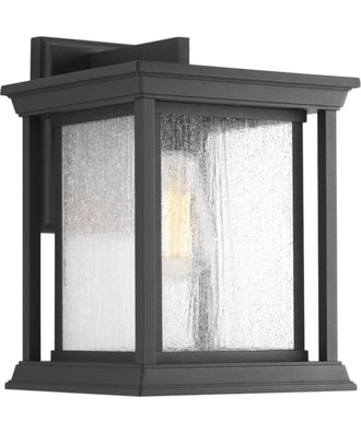 One-Light large wall lantern with a Craftsman-inspired silhouette, Endicott offers visual interest to your home's exterior. The elongated frame is finished with clear seeded glass.