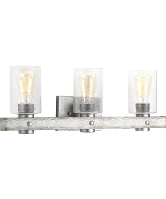 The Gulliver 3-Light Clear Seeded Glass Coastal Bath Vanity Light in Galvanized Finish is a stunning addition to any bathroom. Its dual-toned frame combines a galvanized finish with antique white accents, creating a visually appealing contrast that enhances the rustic charm of your space. The hand-painted wood-grained texture adds a touch of authenticity, making it a perfect fit for rustic, farmhouse, coastal, and urban industrial interiors.