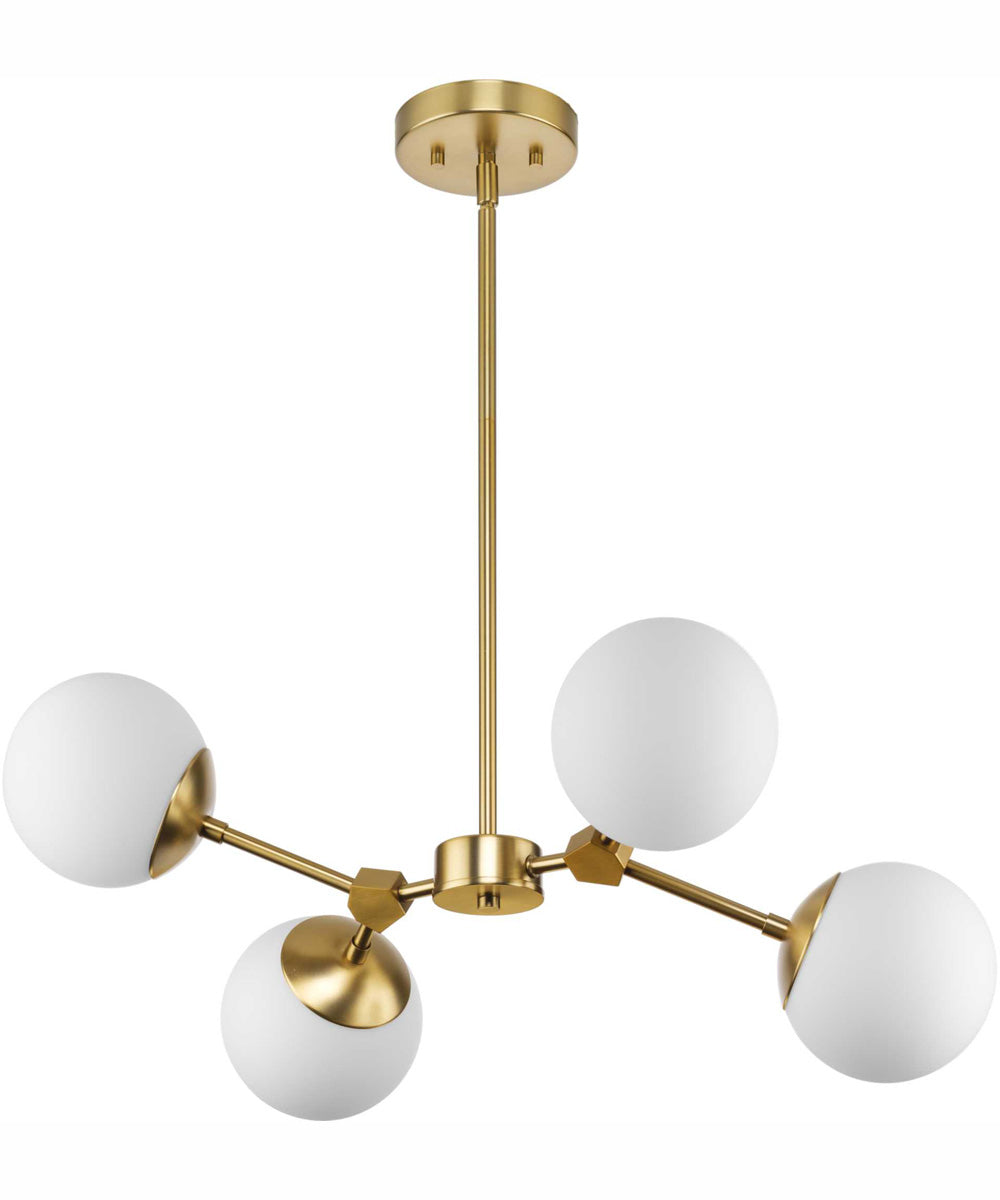 This chandelier seamlessly integrates into mid-century modern, contemporary, mountain modern, and modern interiors. Its sleek design and brushed bronze finish add a touch of glamour, while the opal glass globes soften the overall look, making it a versatile piece that complements various décor styles. Whether your room features minimalist, eclectic, or luxurious themes, the Haas chandelier will enhance the space with its elegant presence.