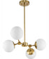 This chandelier is more than just a lighting fixture; it's a statement piece that adds a touch of luxury to any room. The etched opal glass globes provide soft, ambient illumination, ideal for creating a warm and inviting atmosphere. The fixture can be installed as a chandelier or an overscale semi-flush ceiling light, offering versatility to suit your space. It uses four 60-Watt maximum candelabra (G16.5) base bulbs or LED equivalents, which are sold separately. The chandelier is dimmable when used with compatible dimmable bulbs, allowing you to adjust the light intensity to your preference.