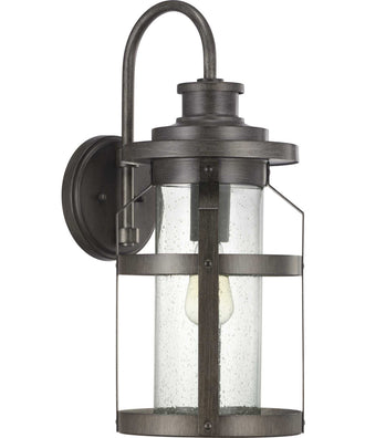 Curving stems and linear banding joined with rivets conjure images of seaport locales. The intersecting linear details surround clear seeded glass. Haslett’s design and construction is a good fit for Coastal, Farmhouse and Industrial-styled homes. Moody Antique Pewter finish. Measures 9 3/8in W x 22 1/8in ht. x 12inD. Uses one medium base bulb, 100-watt max., and is perfectly compatible with a wide variety of bulbs including incandescent, LED, Vintage ST64 and more (all sold separately). CSA Safety listed for use in wet locations. Progress Lighting products are designed for exceptional quality, reliability, and functionality. Includes installation instructions and mounting hardware. Coordinating fixtures available