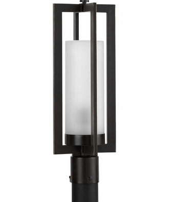 The light fixture features a gorgeous etched glass diffuser ready to emit a beautiful glow. A sleek elongated frame with a rectangular form manifests an architectural design intended to add a modern glow while commanding visual interest. Create a home full of modern elegance with this contemporary post lantern. Ideal for any outdoor space in need of illumination. Perfect for modern or contemporary styles. Measures 7-1/2-inch width by 20-5/8-inch height. Post mounted, fits standard 3" post (sold separately). Uses one medium base bulb that is sold separately (100w max - LED or incandescent). Able to be fully dimmable with dimmable bulbs. Includes installation instructions and mounting hardware. Progress Lighting products are designed for exceptional quality, reliability, and functionality.