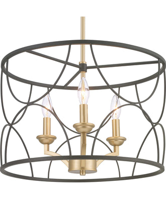 Like a vision within a cloud, a golden cluster candelabra glows from within the sinuous metallic of an outer cage. Exaggerated scale and elegant finishes define Landree’s collection of lighting fixtures. The three-light chandelier works beautifully as a pair over a kitchen island, in an entry foyer, upscale family room or elegant bedroom. An excellent choice for Modern and Luxury interiors. Dramatic Black finish with Vintage Gold accents. Measures 18 1/2in diameter x 12in ht. Uses three 60-watt max. candelabra base bulbs or LED equivalent (sold separately). Compatible with standard wall dimmer. Progress Lighting products are designed for exceptional quality, reliability, and functionality. Includes installation instructions and mounting hardware. Coordinating fixtures available