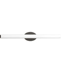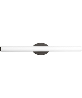 32" Parallel LED bath and vanity fixtures feature a tubular opal glass diffuser paired with a simple, modern oval metal canopy. An integrated LED source provides a variety of energy and cost savings benefits. Suitable for residential and commercial applications, and can be installed vertically or horizontally. Architectural Bronze finish.