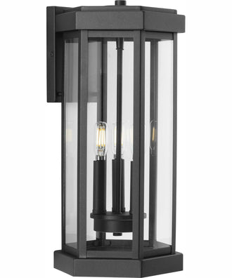 This wall lantern features a sleek, slender metal frame that outlines clear glass panels, creating a visually appealing hexagonal structure. The textured black finish adds a touch of understated elegance, making it a versatile addition to your outdoor décor. The painted finish ensures durability while maintaining its aesthetic appeal over time.