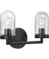 Eliminate shadows from bathroom and dressing table mirrors, hallways, or wherever focused task light is needed with the Signal two-light bath. A perfect pair of clear, blown glass shades envelop exposed bulbs to create a gorgeous glow. Aesthetically-pleasing contrast is created with the Graphite-finished round backplate and smooth simple bar that accommodates the light sources as they illuminate a coastal, modern farmhouse, or modern setting.