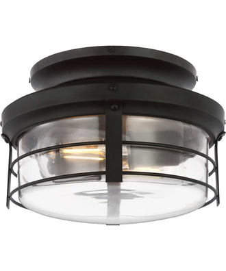 An open cage frame surrounds two ST19 bulbs in the rustic design of the Springer II Light Kit. As the sun goes down, this piece is ideal for entertaining under the circulating air of your Springer II ceiling fan. Damp listed for use inside or in covered outdoor areas, this light kit provides beautiful ambient illumination to bedrooms, living rooms, porches and patios infarmhouse, rustic, and coastal style settings. Its vintage style light base is coated in a soft Architectural Bronze finish.