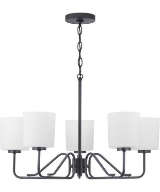 Progress lighting Tobin 5-Light Etched White Glass Modern Chandelier Light Matte Black