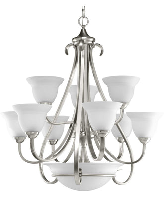 Chandeliers hang from a ceiling, usually nearer to the center of a room or over a table area. They usually feature multiple arms spreading out from the center, with a larger number of light bulbs. They produce a lot of light and work great over a dining room table, in a living room or foyer. A smaller chandelier also works well over a seating area or smaller table. As a hardwired light fixture it must be installed electrically and is usually switched on or off by a wall switch. A chandelier can make a statement as a beautiful centerpiece.