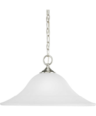 The Trinity 1-Light Etched Glass Traditional Pendant Light in Brushed Nickel is a stunning addition to any home. Featuring gracefully soft angles and curving lines, this pendant light embodies classic sophistication with a touch of exotic charm. The etched glass shade adds a delicate texture that diffuses light beautifully, creating a warm and inviting ambiance. The brushed nickel finish enhances its timeless appeal, making it a versatile piece that complements both traditional and transitional interiors.