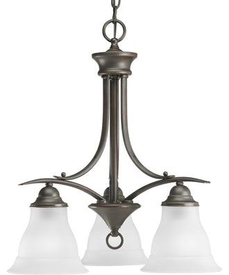 The Trinity 3-Light Etched Glass Traditional Chandelier Light in Antique Bronze is a stunning addition to any home. Its design features soft angles and curving lines that create a graceful and exotic appearance, perfect for adding a touch of classic sophistication to transitional interiors. The sculptural forms of metal and glass are enhanced by a timeless Antique Bronze finish, making this chandelier a versatile piece that can transform any room with its charming elegance.