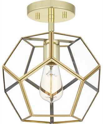 With its unique shape, Kinslee adds geometric flair to any number of spaces. The one-light semi-flush mount light features clear beveled glass and angular lines. Choose from either polished brass or matte black to make an eye-catching statement in the setting of your choice.