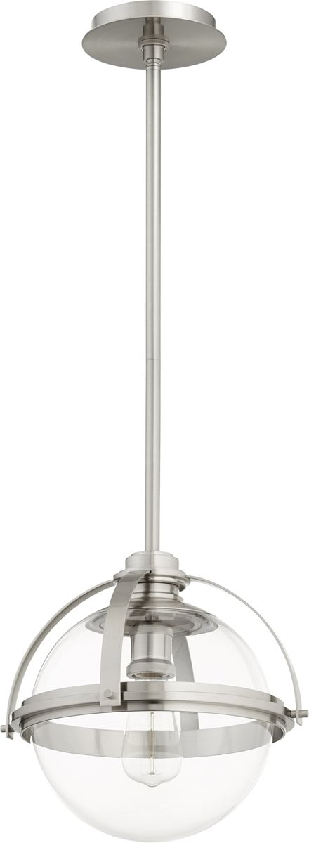 Transform your living space with the exquisite 13" W 1-light Pendant in Satin Nickel. This stunning pendant light is designed to bring a touch of elegance and modernity to any room. The sleek satin nickel finish exudes sophistication, making it a perfect addition to contemporary and transitional interiors. The clear shade allows for maximum light diffusion, creating a warm and inviting ambiance.