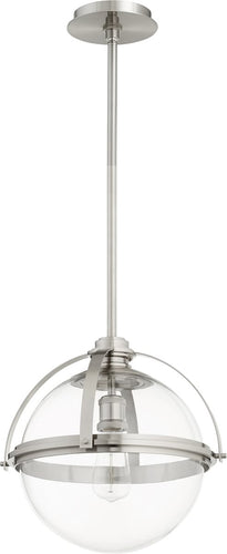 The satin nickel finish of this pendant light allows it to seamlessly integrate into different color schemes and room designs. Its clear glass shade adds a touch of transparency and lightness, making it suitable for both small and large spaces. The pendant's weight of 13 lbs ensures stability and durability, promising years of reliable performance.
