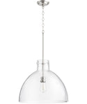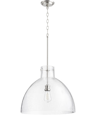 This pendant light features a clear seeded shade that provides a beautiful, diffused light, creating a warm and inviting atmosphere. The 17" height and 18.5" width make it an ideal size for various spaces, whether you're looking to illuminate a dining area, kitchen island, or entryway. The pendant requires one 60-watt medium-base bulb (not included), allowing you to choose the perfect bulb to suit your lighting needs. Weighing 13.8 lbs, it is sturdy yet easy to install. Additionally, the pendant is UL listed for damp conditions, making it suitable for bathrooms and covered outdoor areas.