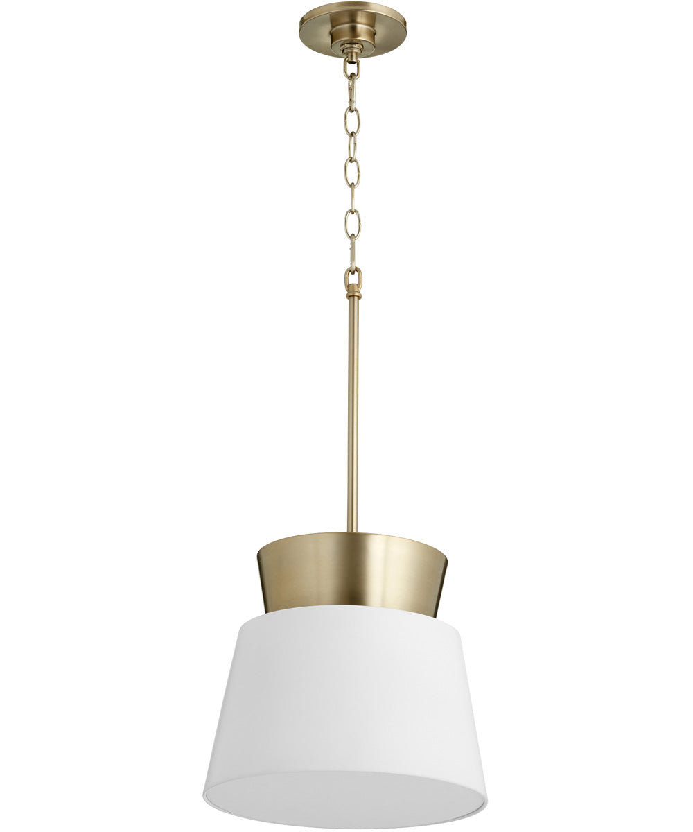 Transform your living space with the 12"W 1-light Pendant in Studio White and Aged Brass. Its elegant design, versatile functionality, and high-quality construction make it a must-have lighting fixture for any home or office. Don't miss out on the opportunity to elevate your interior decor with this beautiful pendant light. Order now and experience the perfect blend of style and illumination.