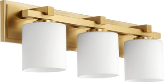 Picture this 3-light Bath Vanity Light in your home or office. Refresh your room with this Aged Brass -finished Bath Vanity Light by Quorum.