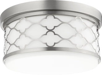 Picture this 3-light Ceiling Flush Mount in your home or office. Refresh your room with this Satin Nickel-finished Ceiling Flush Mount by Quorum.