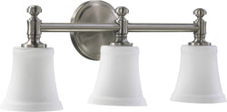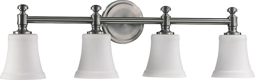 This 4-Light Bathroom Vanity Strip, finished in attractive Satin Nickel, sets itself apart from the crowd and adds the final touch to your bathroom.