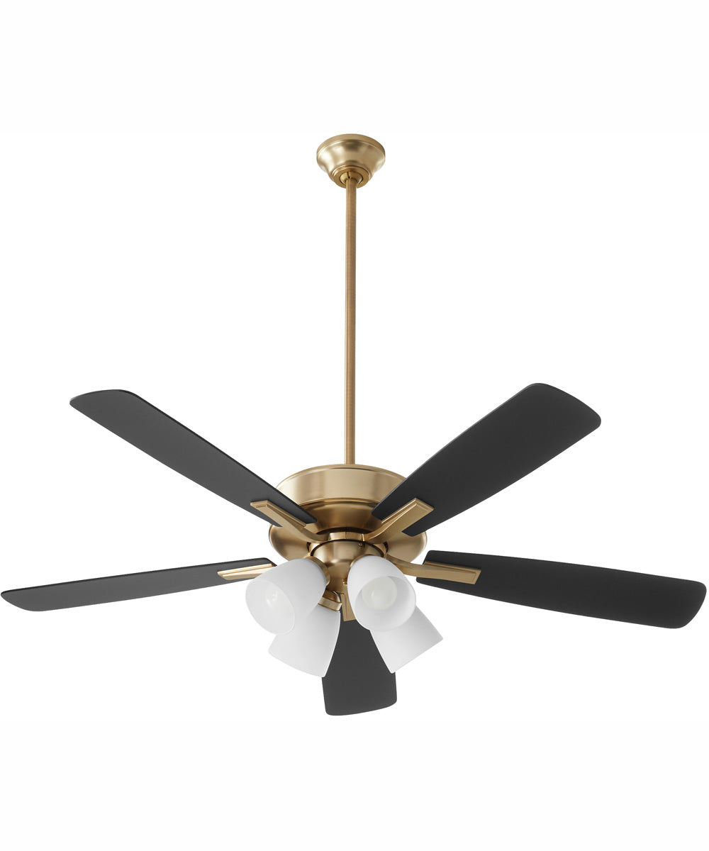 Picture this 4-light Ceiling Fan in your home or office. Refresh your room with this Aged Brass -finished Ceiling Fan by Quorum.