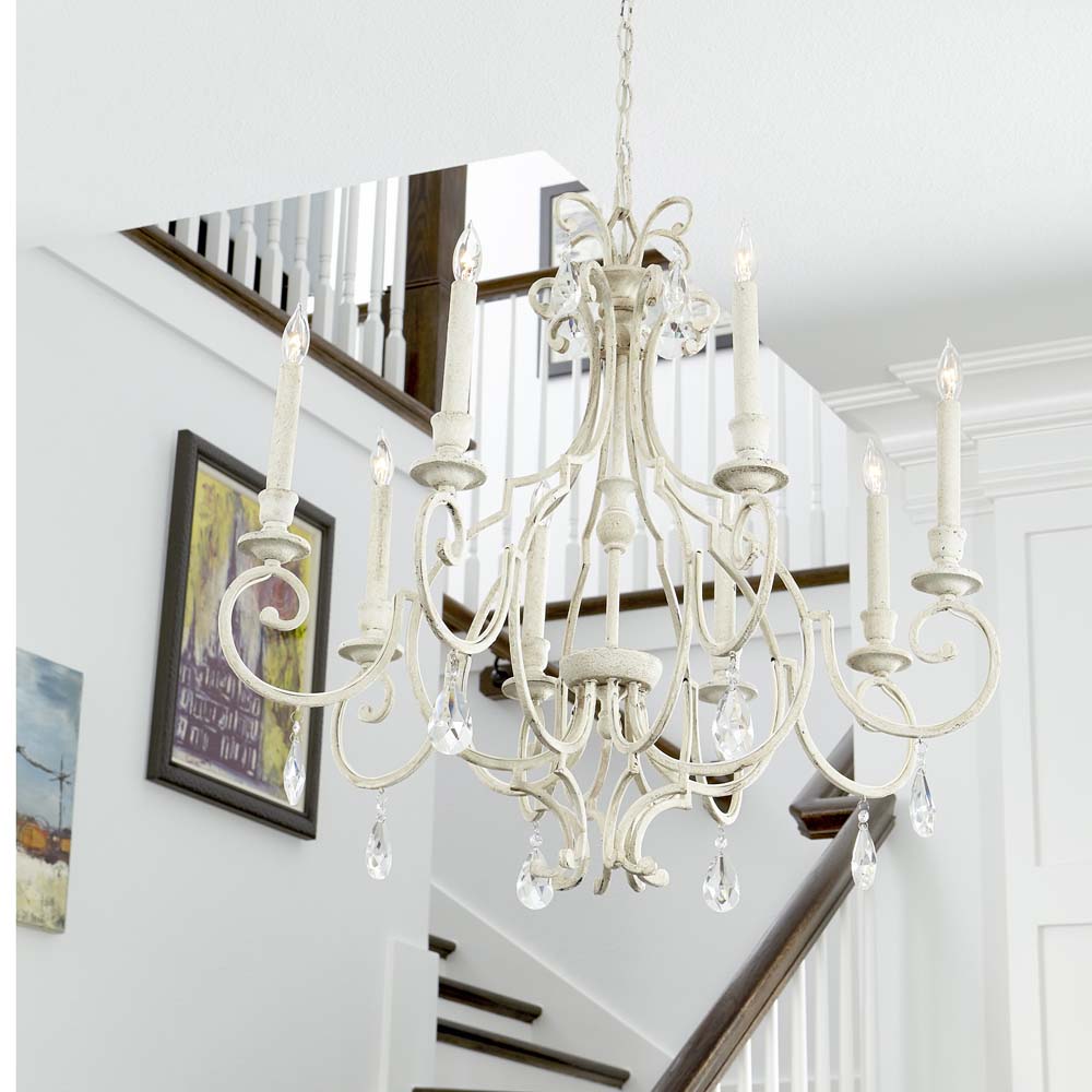 Picture this 8-light Chandelier in your home or office. Refresh your room with this Aged Silver Leaf-finished Chandelier by Quorum.