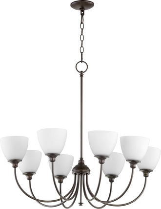 Picture this 8-light Chandelier in your home or office. Refresh your room with this Oiled Bronze-finished Chandelier by Quorum.