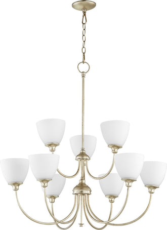 Transform your living space with the exquisite 32" Celeste 9-light Chandelier in Aged Silver Leaf. This stunning chandelier by Quorum combines a timeless design with modern elegance, making it a perfect addition to any home or office. The aged silver leaf finish exudes sophistication while seamlessly blending with various interior styles, from transitional to contemporary.