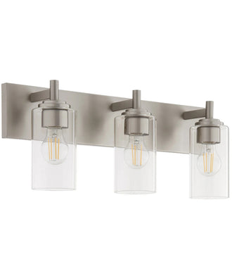 This bath vanity light is not just about looks; it offers numerous functional benefits. Measuring 9 inches in height and 22.5 inches in width, it provides ample illumination for your bathroom or vanity area. The fixture accommodates three 100-watt medium-base bulbs (not included), ensuring bright and efficient lighting. The clear glass shades help diffuse the light evenly, creating a well-lit environment perfect for grooming and daily routines. Additionally, the light is UL listed for damp conditions, making it suitable for bathrooms and other moisture-prone areas.