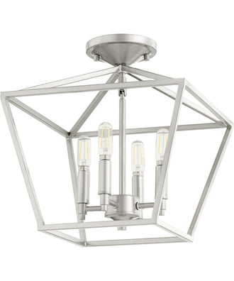The 13"W Gabriel 4-light Ceiling Flush Mount in Classic Nickel is a stunning addition to any home or office. This fixture features a sophisticated design that combines modern elegance with timeless appeal. The geometric shape of the frame, with its clean lines and open structure, adds a contemporary touch to your space. The classic nickel finish enhances its sleek and polished look, making it a versatile piece that complements various interior styles.