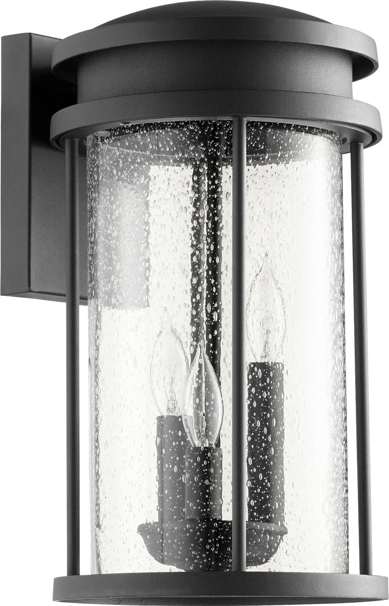 Introducing the 15" Hadley 3-light Outdoor Wall Mount Light Fixture in Noir, a perfect blend of elegance and functionality. This exquisite light fixture is designed to enhance the aesthetics of any outdoor space with its transitional style. The cylindrical shape, combined with the sleek Noir finish, offers a sophisticated look that complements various architectural styles. The clear seeded glass adds a touch of vintage charm while providing ample illumination.