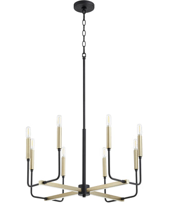 Picture this 8-light Chandelier in your home or office. Refresh your room with this Noir w/ Aged Brass-finished Chandelier by Quorum.