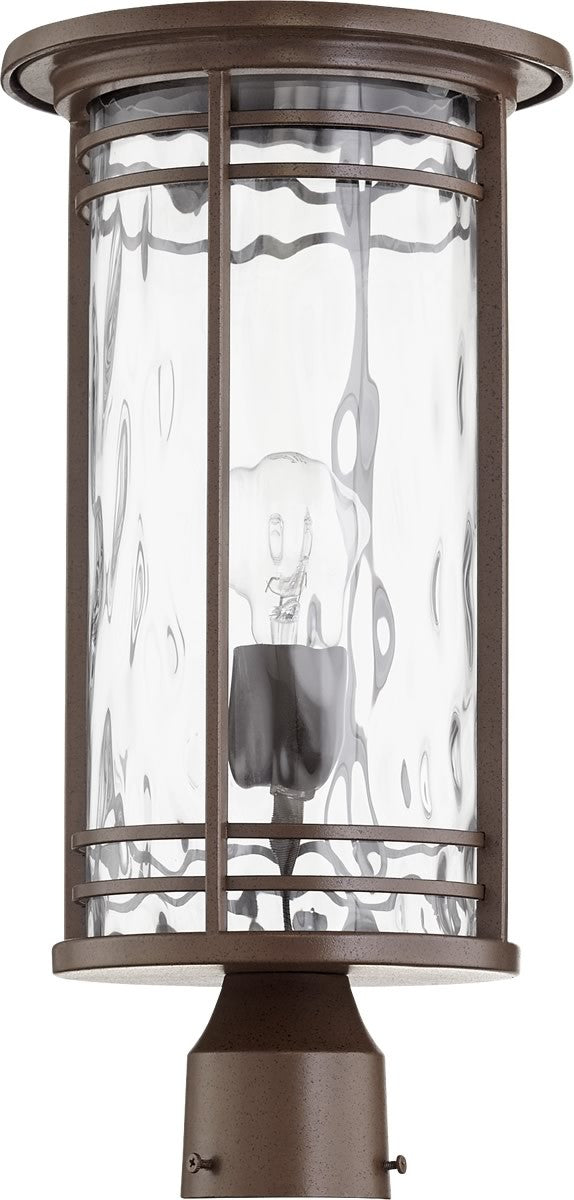 Quorum Larson 1-light Outdoor Post Lantern Oiled Bronze w/ Clear Hammered Glass