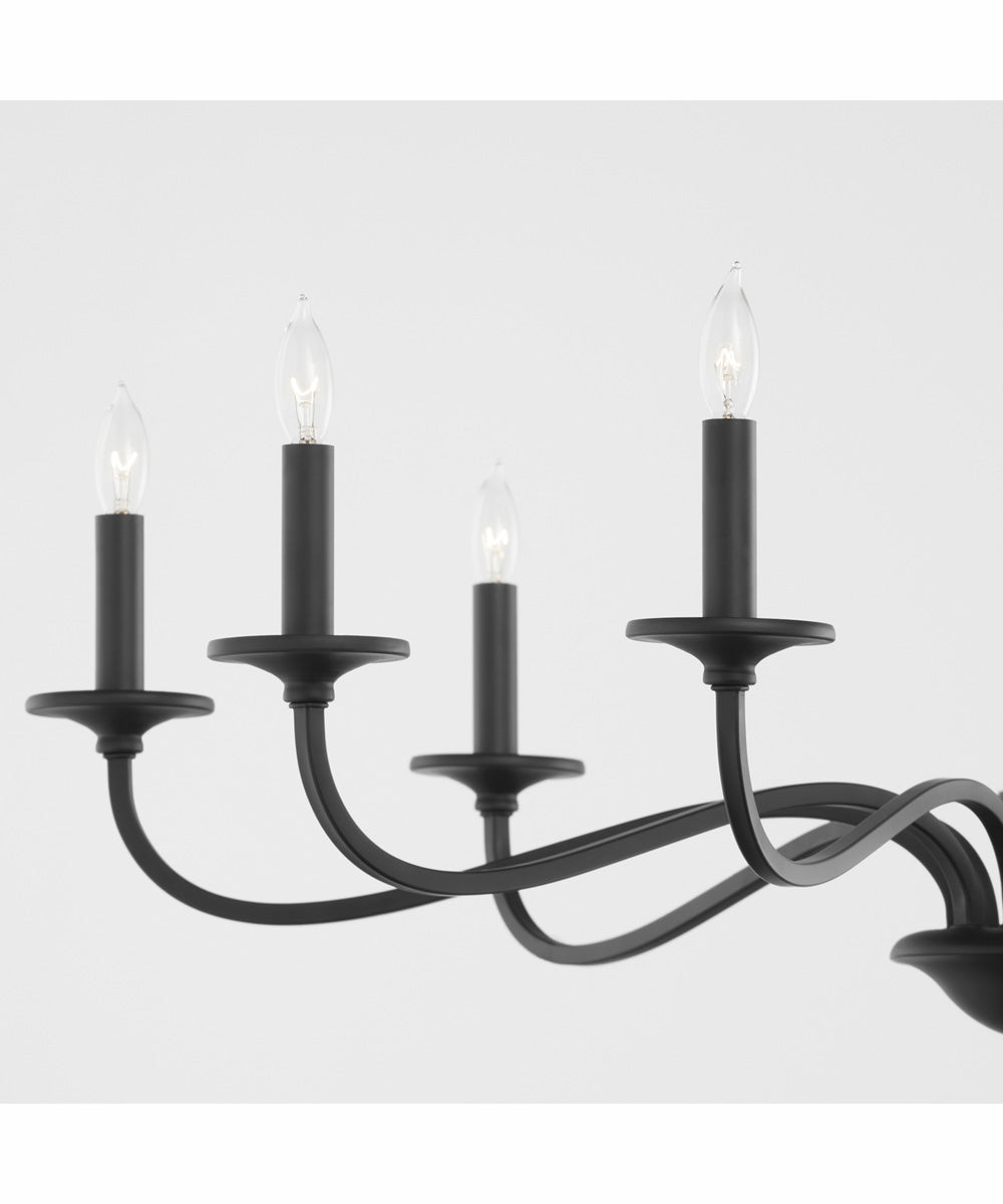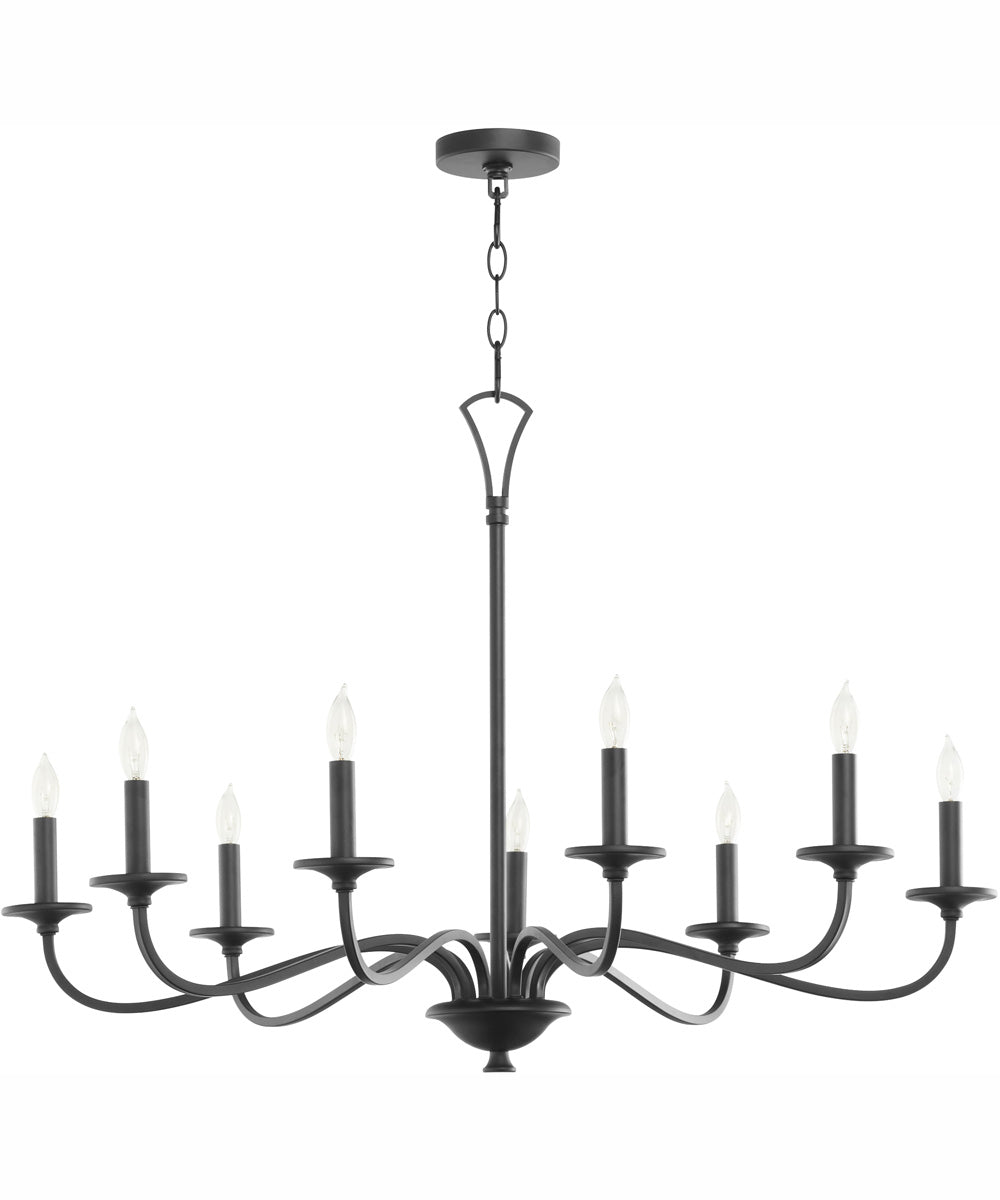 The Maryse 9-light Chandelier's matte black finish and traditional design allow it to blend seamlessly with various room themes. Whether your décor is modern, rustic, vintage, or transitional, this chandelier will enhance the overall aesthetic. Its minimalist yet elegant design ensures it won't clash with other elements in the room, making it a versatile choice for any interior style. The chandelier's classic look is particularly well-suited for traditional and vintage-themed rooms, where it can serve as a focal point and conversation starter.