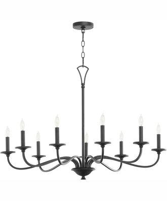 Introducing the Maryse 9-light Chandelier in Matte Black, a stunning piece that effortlessly combines traditional style with modern elegance. This chandelier features a graceful design with nine arms extending outward, each holding a candelabra-style bulb. The matte black finish adds a touch of sophistication, making it a versatile addition to any décor. Measuring 25 inches in height and 37 inches in width, this chandelier is perfectly sized to make a bold statement without overwhelming your space.