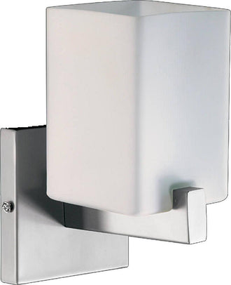 This wall sconce boasts a beautiful satin nickel finish that enhances its contemporary appeal. The satin nickel provides a subtle sheen, offering a refined and polished look that can seamlessly blend with various interior decor styles. The frosted glass shade diffuses light softly, creating a warm and inviting ambiance in any room.