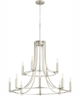 Picture this 12-light Chandelier in your home or office. Refresh your room with this Satin Nickel -finished Chandelier by Quorum.