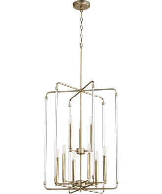 Picture this 9-light Entry Foyer Hall Chandelier in your home or office. Refresh your room with this Aged Brass -finished Entry Foyer Hall Chandelier by Quorum.