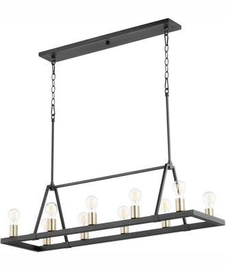 Picture this 10-light Chandelier in your home or office. Refresh your room with this Textured Black w/ Aged Brass-finished Chandelier by Quorum.